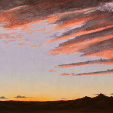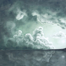 Traditional oil-on-canvas paintings about cloud structures: Clouds can be made of waterdamp in the air, fluids in air or water, dust, ashes, smoke and so on. Waterdamp clouds have ornamented our skies since the beginning of time, constantly changing the light on our landscapes, their appearance unmodified by humans.. For these series about cloud structures, I use traditional oil on canvas, though in very thin layers, like glacis, witch allows me to work with light & darkness.